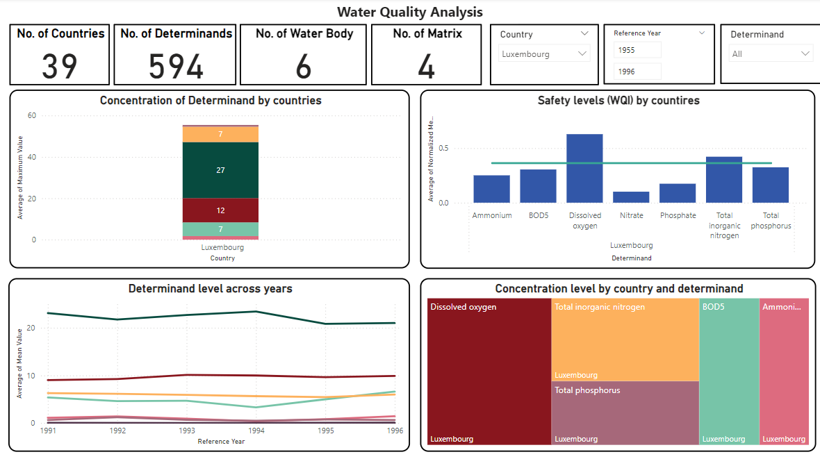 This project aims to analyze and visualize extensive water quality sensor data collected from various European countries over multiple periods using Power BI. The goal is to transform raw data into actionable insights by leveraging Power BI’s capabilities, including data preparation, modeling, and visualization. The project involves importing and cleaning data, building relationships between datasets, and using DAX to create calculated measures for deeper analysis. Through interactive dashboards and advanced visualizations, the analysis will uncover trends, anomalies, and comparative insights, supporting regulatory compliance and environmental sustainability. Additionally, the project emphasizes mastering Power BI’s features, such as drill-through, filters, and collaborative sharing, to demonstrate its effectiveness in data-driven decision-making.