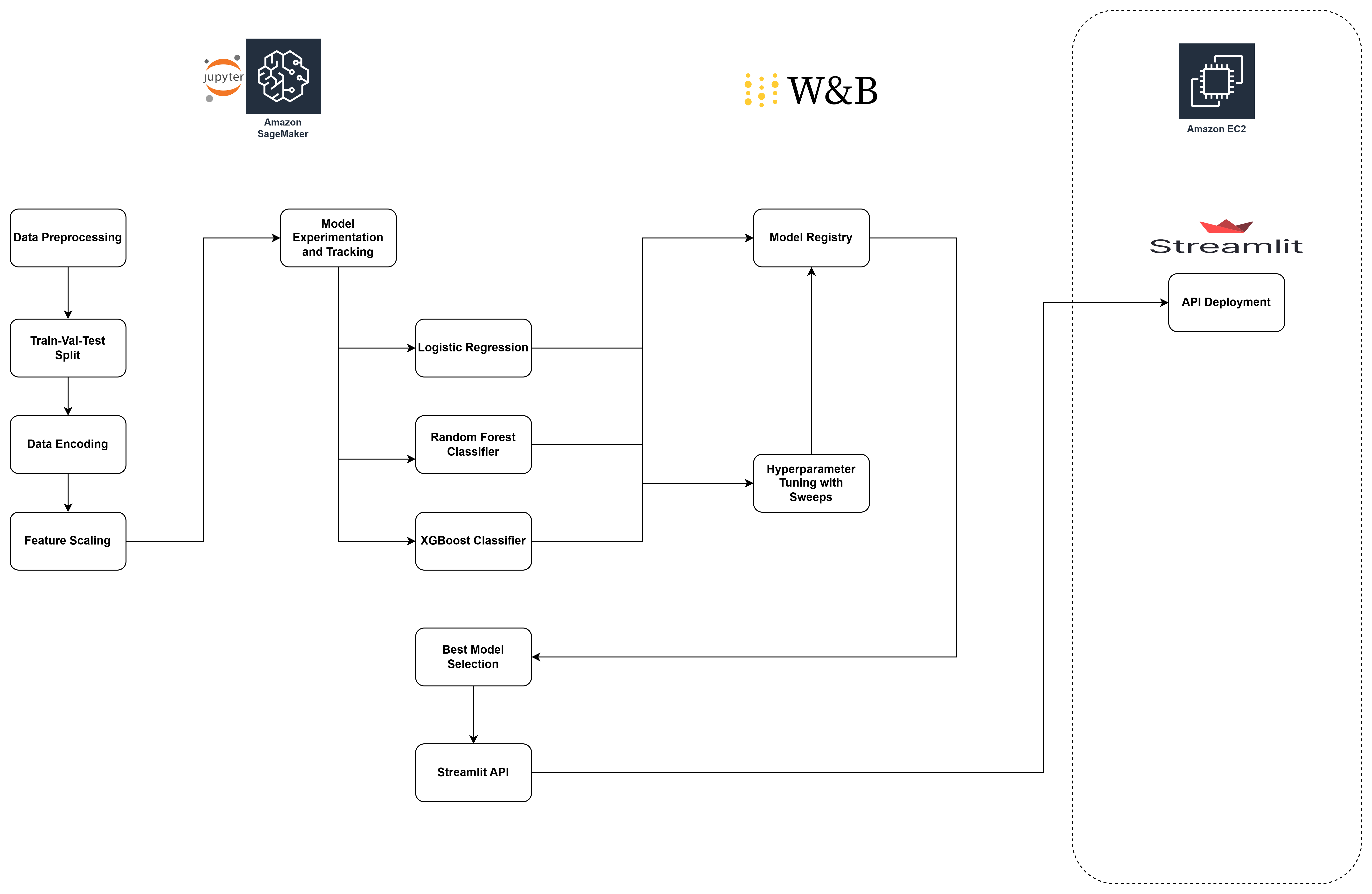 In Part 2, we delve deeper into the machine-learning pipeline. Focusing on data retrieval from the feature store, train-validation-test split, one-hot encoding, scaling numerical features, and leveraging Weights and Biases for model experimentation, we will build our pipeline for model building with logistic regression, random forest, and XGBoost models. Further, we explore hyperparameter tuning with sweeps, discuss grid and random search, and, ultimately, the deployment of a Streamlit application on AWS.